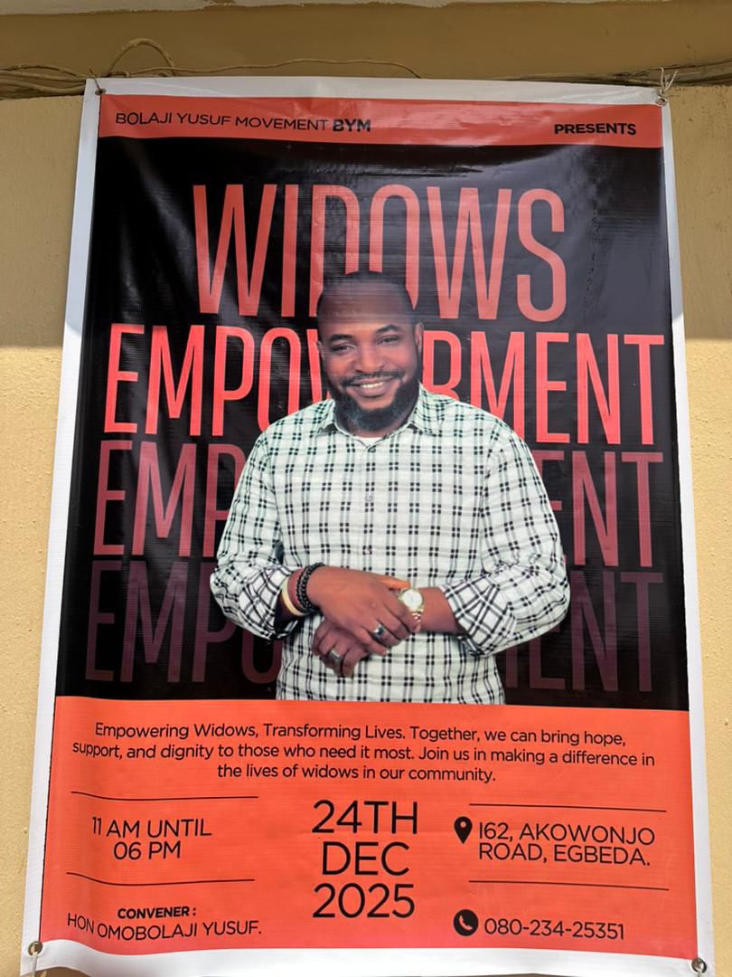 The immediate past Councillor representing Ward A, Alimosho Local Government, Hon. Omobolaji Yusuf, has continued his annual widows’ support programme through his foundation, the Bolaji Yusuf Movement (BYM). The humanitarian initiative, which began immediately after he was sworn in as a councillor, has now become a sustained tradition even after the completion of his two-year tenure in office.